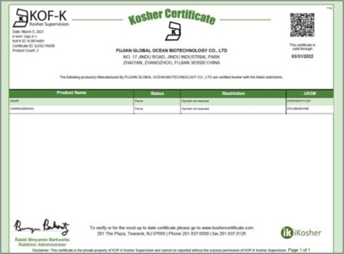 KOSHER猶太潔食認(rèn)證證書(shū) | |