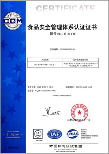 ISO22000食品安全管理體系認(rèn)證證書(shū) |